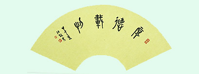 名称:大篆扇面“厚德载物”尺寸53CMx25CM 作者:张殷实 尺寸53CMx25CM 价格:0
