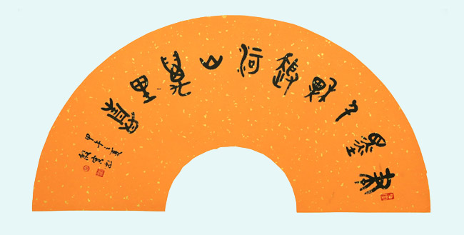 大篆扇面“笔墨千秋趣,河山万里情” 尺寸 60CM*30CM
