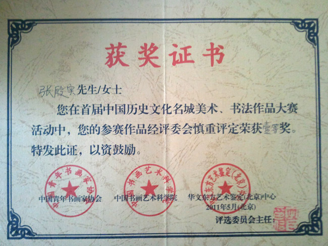 名称:2011年度获中国历史文化名城美术书法作品大赛一等奖.jpg
