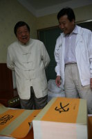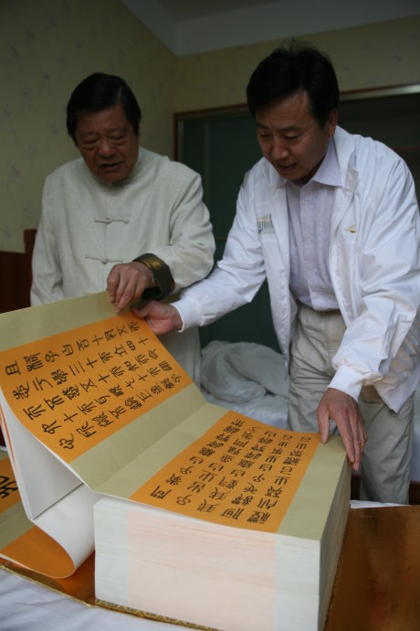 介绍:香港孔教学院院长汤恩佳博士,欣赏张殷实《论语》巨著作品,并为该作品题写“仁者爱人”在题写中。