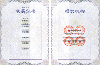 纪念毛泽东《在延安文艺座谈会上的讲话》发表七十周年 中华红色艺术创作展 获奖证书